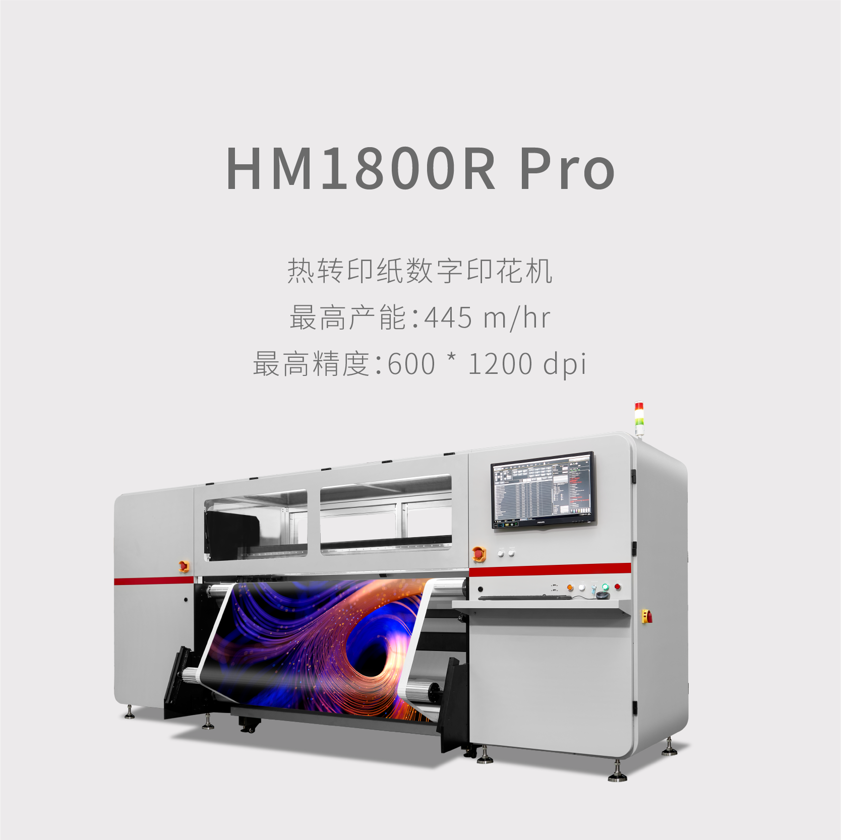 全新紡織印花導(dǎo)帶直噴機最高產(chǎn)能:1786㎡/hr 滿配64個工業(yè)級噴頭